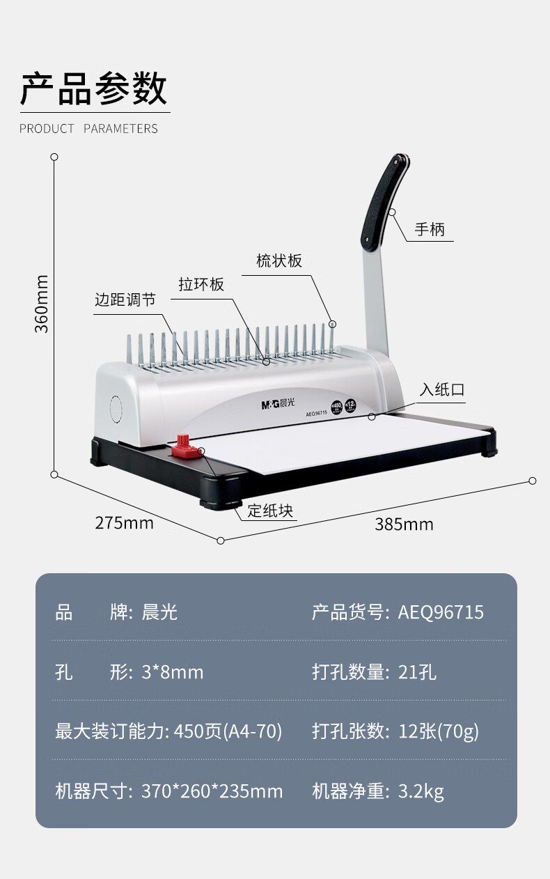 商品名稱:晨光膠圈裝訂機 21孔梳式夾條打孔機財務(wù)憑證機 單臺裝AEQ96715