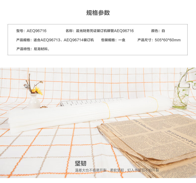 商品名稱:晨光4.8mm*500mm財(cái)務(wù)裝訂機(jī)鉚管 透明裝訂耗材 100支/盒AEQ96716